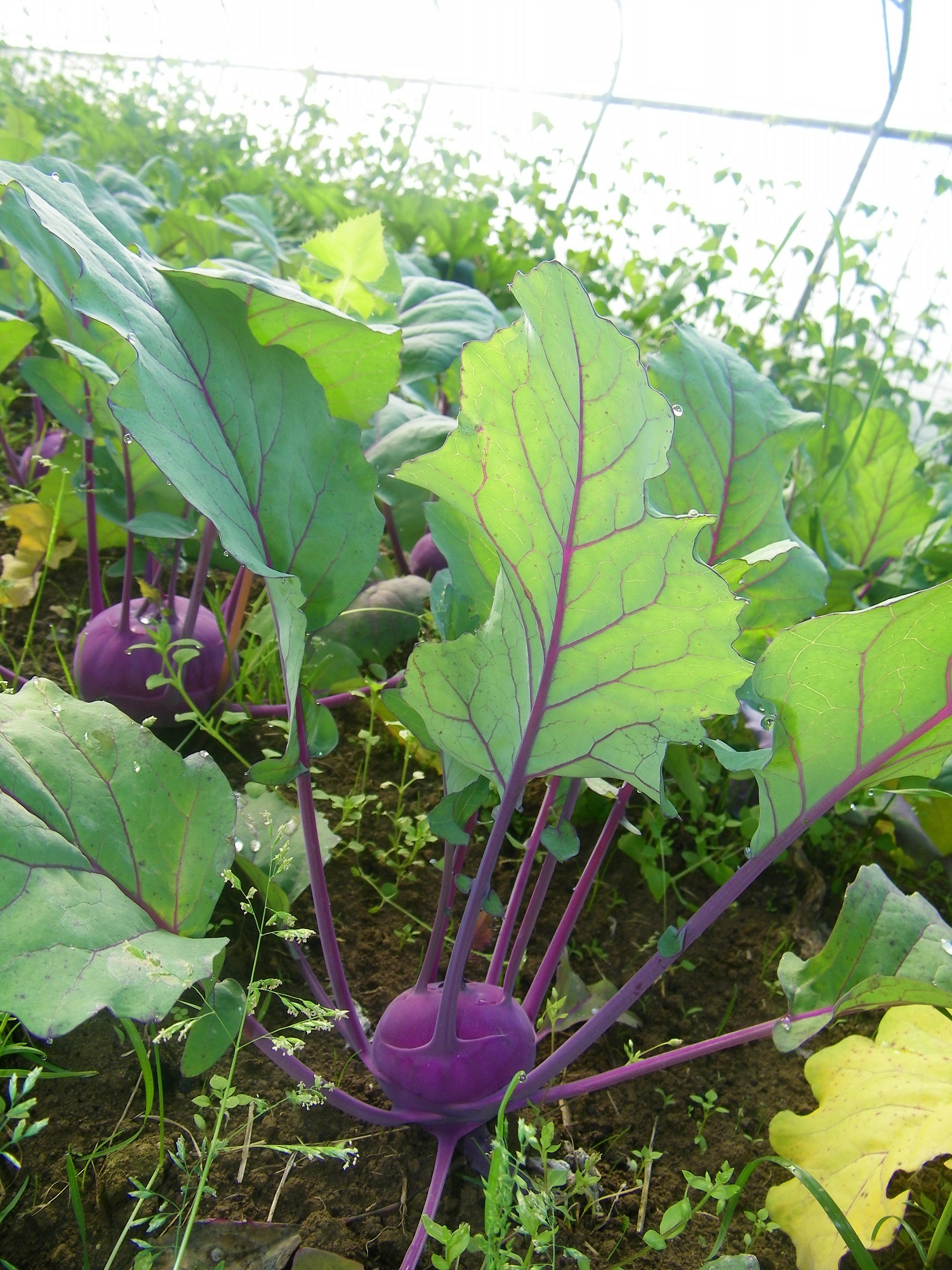 En 3 jours de beau (mercredi, jeudi et vendredi), certains légumes ont doublé de volume.On est quand même pas très a l’aise avec la composition du panier. Avec les gelées tardives du mois d’avril, on a perdu quelques légumes, la roquette, des choux chinois, les navets (qu’on vous a quand même mis mais qui vraiment étaient très moches). Et il y a beaucoup de retard sur pas mal de légumes, les haricots sont loin d’être prêts, les courgettes commencent enfin à bien donner (presque 3semaines de retard), les salades seront au rendez vous cette semaine. Les choux sont eux en retard. Outre les températures et la pluie qui peuvent nous empêcher de faire notre travail. Nous avons beaucoup de problème avec des maladies et des parasites. Les choux par exemple se font un peu manger par les limaces, perdrix et altises. Et notre beau plant de poireaux a chopé une vérole (on sait pas encore laquelle, faut mener l’enquête), pas mal de pieds de courgettes sous les tunnel ont une virose, un virus présent dans le sol dont on ne se débarrasse qu’avec le temps et de bonne rotation. Ne pas planter plusieurs années de suite les légumes au même endroit, mais sous les tunnels ce n’est pas évident…Toujours le même constat : il nous faut plus de surface couverte!.