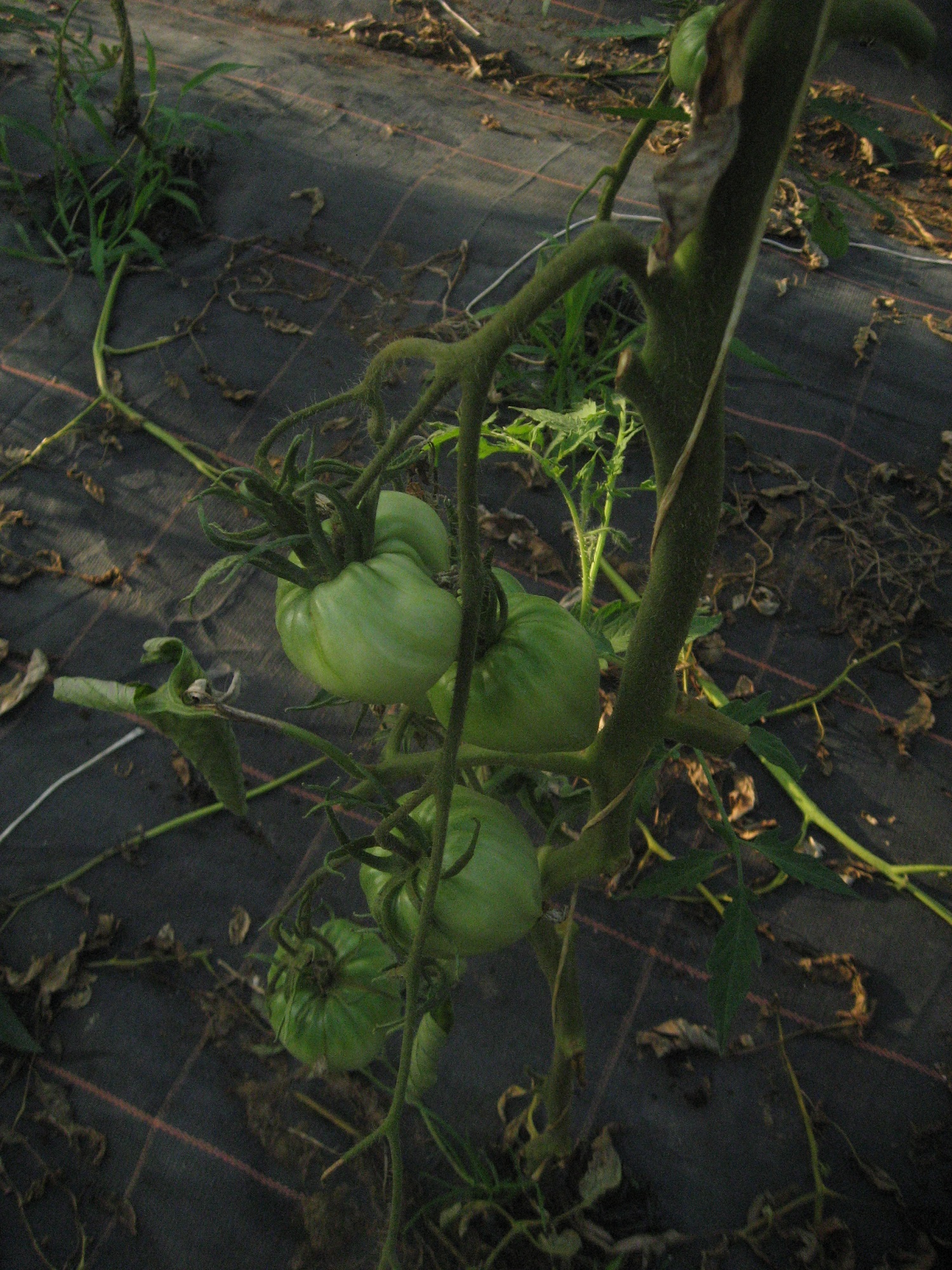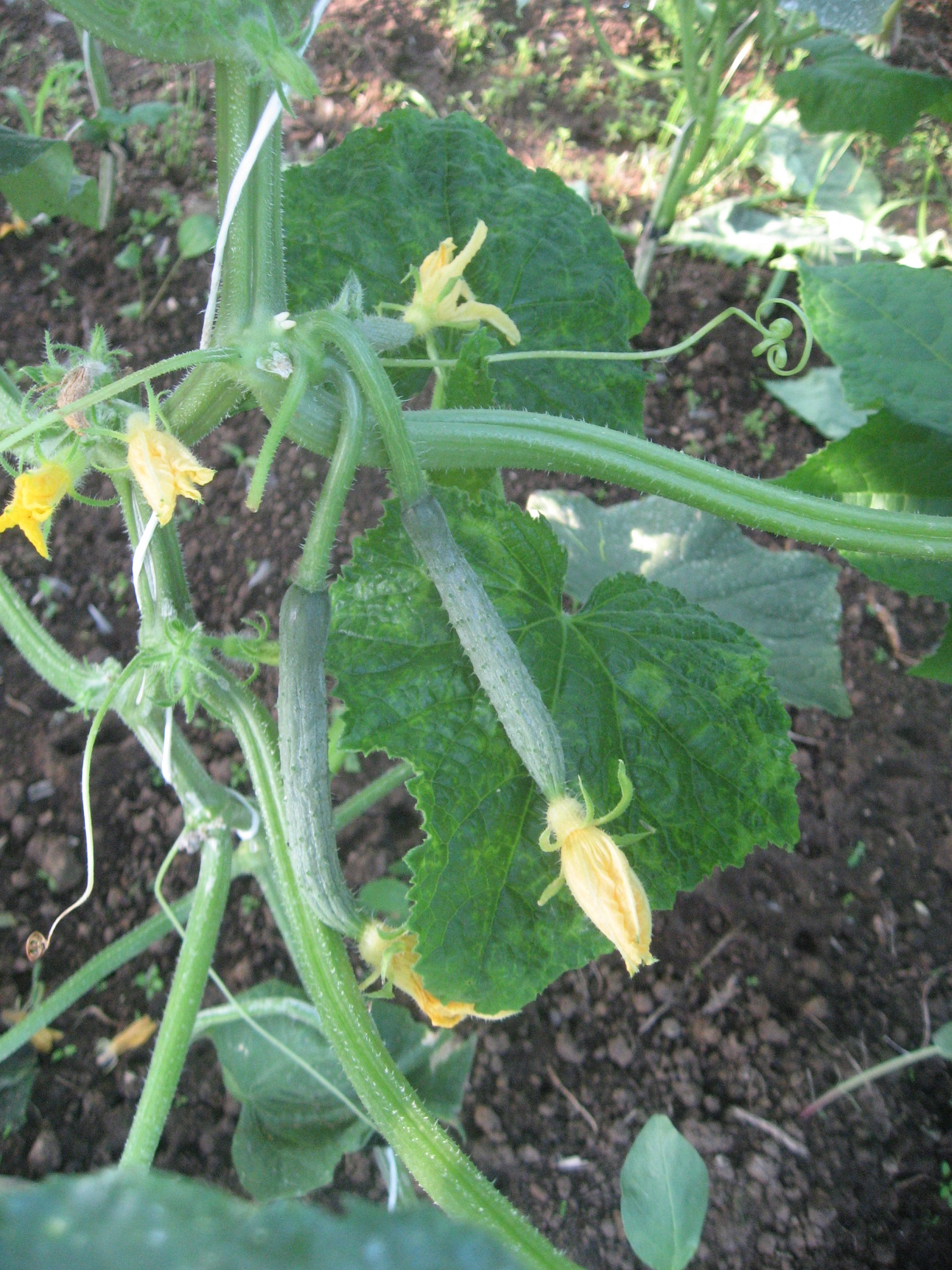 Coté panier d’été, les tomates murissent à la vitesse d’une limace sur l’autoroute du soleil. Rassurez vous, on voit le panneau plage. Patience! Coté quantité c’est pas ça qu’est ça. Mais bon. Les concombres ont plus ou moins raté donc on en a refait et ils sont, on peut le dire sans rougir, ma-gni-fiques. Donc s’il n’y a pas une plaie d’Égypte qui les frappe… les poivrons sont beaux aussi mais rappelez vous, ça se cueille pas avant le premier juillet, on a de la chance cette année ils sont en avance (va comprendre), patience! Les aubergines ont eu moins de chance, leur tunnel a été un peu inondé pendant la mousson, mais elles se retapent bien. Dans vos paniers bientôt…Mais pas de surprise, l sur tout les legumes d’été les rendements seront moindres, un peu de maladies, beaucoup de parasites et beaucoup de fleurs avortées….
